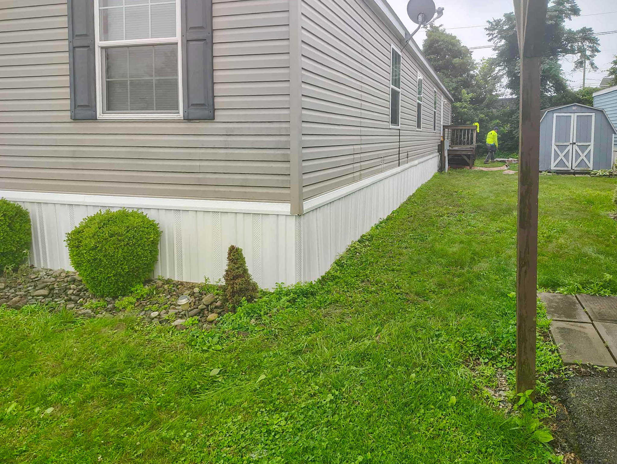 This project involved the complete replacement of existing mobile home skirting for a valued customer in Akron, PA. The previous skirting was showing signs of wear and tear, impacting both the appearance and the insulation of the home. We meticulously removed the old materials and installed new, high-grade skirting, providing a fresh, clean look and improved protection against the elements and pests. As part of this comprehensive service, we also replaced the skirting trim, ensuring a cohesive and professionally finished appearance. Our team ensured a precise and efficient installation, minimizing disruption to the homeowner and delivering a finished product designed for longevity and performance. The new skirting and trim not only significantly improved the home’s exterior but also contributed to better energy efficiency by creating a more insulated crawl space.